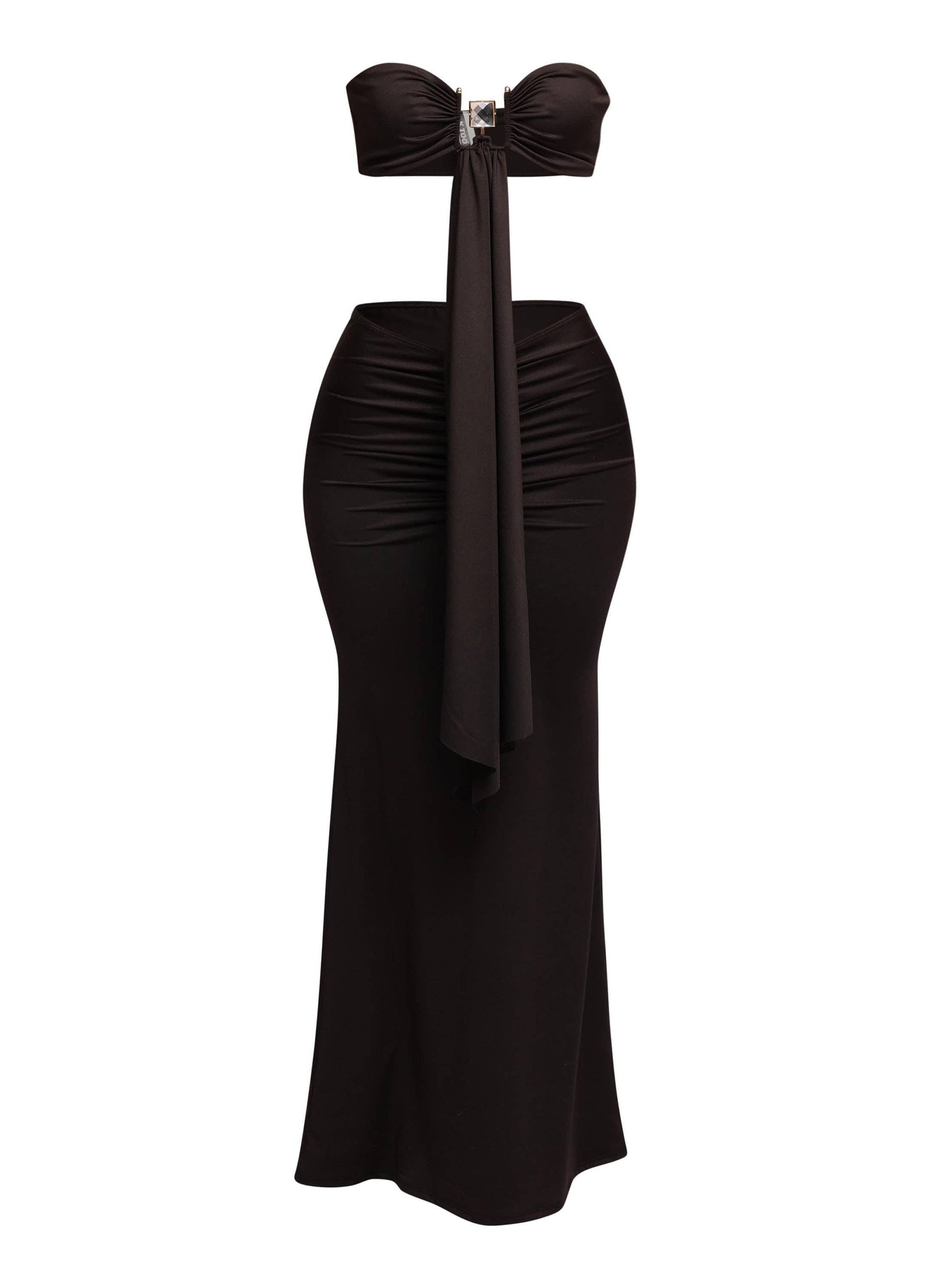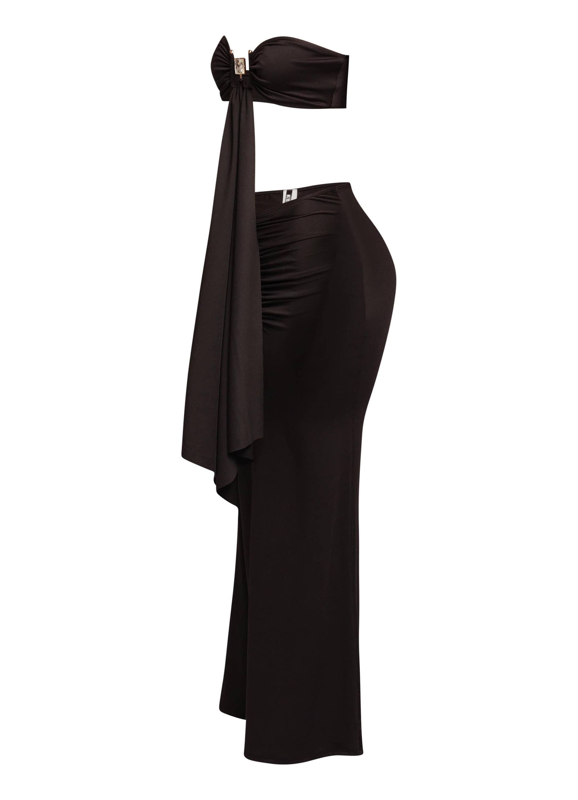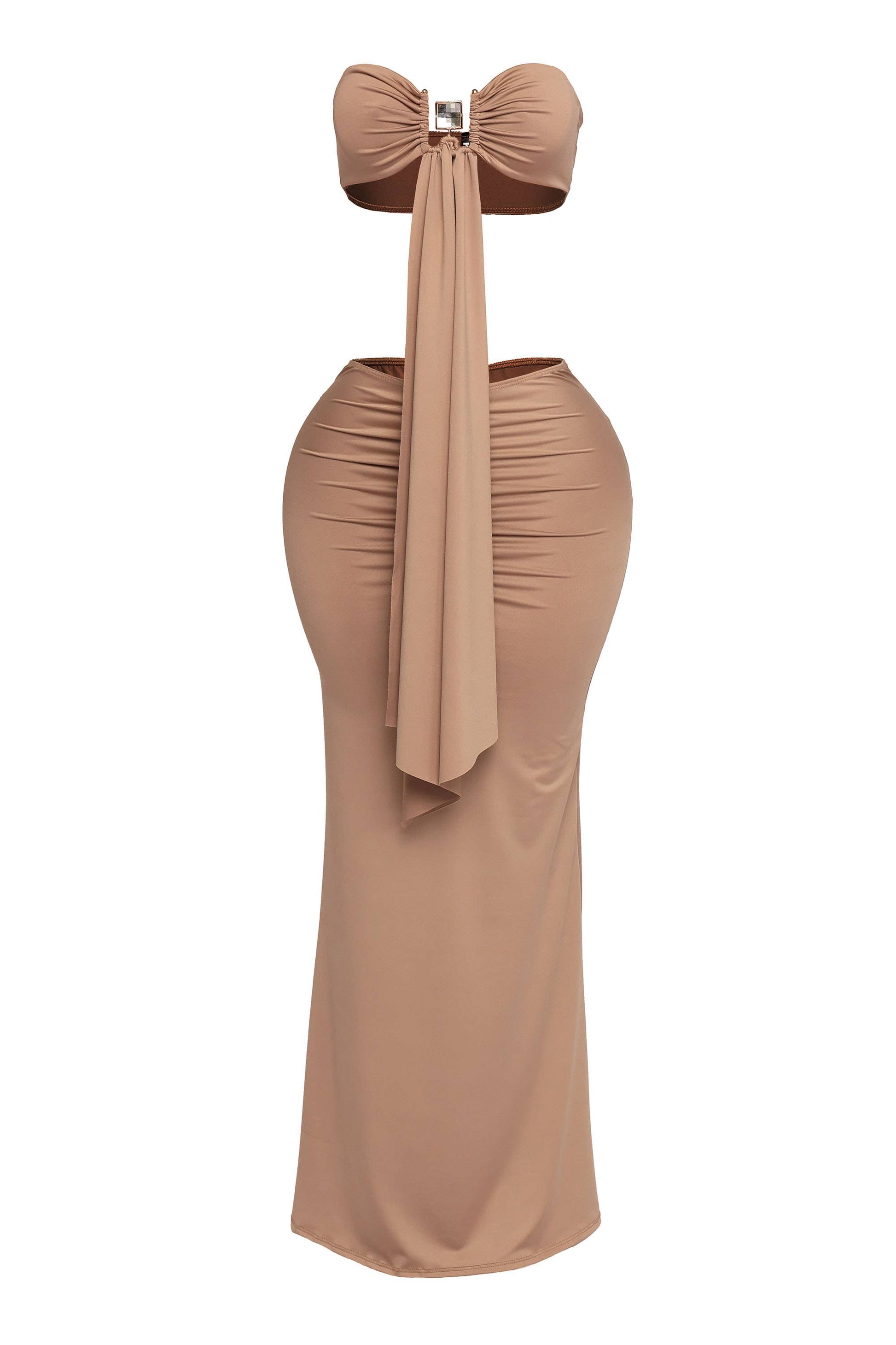 Tube top Sleeveless Pull over top Unlined top Elastic Waistband Pull on Bottom Unlined Bottom Straight hem Slim Fit / Close to the body, 95% Polyester 5% Spandex Imported Hand wash with cold water, hang dry. Do not Bleach